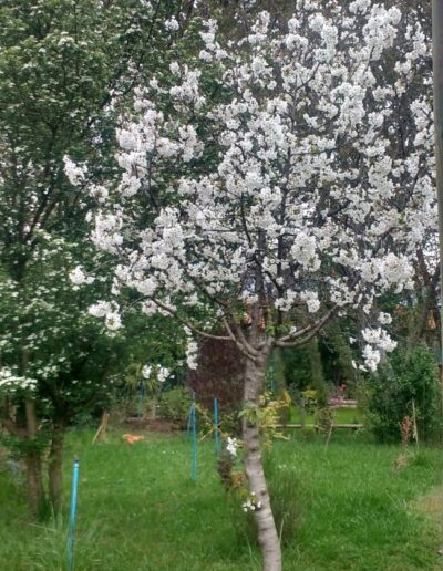 EL CEREZO DULCE, ES UN ÁRBOL DE GRANDES DIMENSIONES Y MUY VIGORO, ES UN ÁRBOL CADUCIFOLIO, LO QUE SE REFIERE A QUE PIERDE TODO SU FOLLAJE UNA VEZ AL AÑO Y PARA ESTE CASO, OCURRE EN LOS PERIODOS DE OTOÑO E INVIERNO. PUEDE MEDIR APROXIMADAMENTE 30 METROS DE ALTURA, SU COPA ES ANCHA Y SE DESPLIEGA DE MANERA PIRAMIDAL. EL TRONCO TIENE UNA TONALIDAD ROJIZA, ES DE FORMA RECTA Y PRESENTA UNA CORTEZA LISA, QUE CON EL TRANSCURSO DE LOS AÑOS.