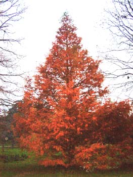 CONÍFERA DE HOJA CADUCA. ES DE LAS POCAS ESPECIES DE CONÍFERAS QUE TIRAN LAS HOJAS CADA AÑO.PRESENTA UN FOLLAJE LIGERO Y ELEGANTE, VERDE CLARO EN PRIMAVERA, AMARILLENTA EN VERANO Y ROJO EN OTOÑO. SE UTILIZA EN GRANDES ESPACIOS POR SU PORTE SIMÉTRICO, MAJESTUOSO, CÓNICO Y DE BASE MUY ANCHA. SU CRECIMIENTO ES RÁPIDO, SIENDO SU ALTURA FINAL DE 40M. SU HÁBITAT IDEAL SON LAS AGUAS ESTANCADAS, POR LO QUE NO SE ENCUENTRA PLANTA MEJOR PARA ADORNAR LAS ORILLAS DE LOS CURSOS DE AGUA Y LOS ESTANQUES DE PARQUES Y JARDINES. RESULTA IDEAL PARA FORESTAR ZONAS PANTANOSAS.