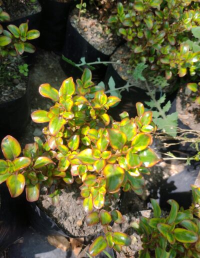 ARBUSTOS ORNAMENTALES PERENNES CON HOJAS BRILLANTES DE COLOR MARRÓN CHOCOLATE Y BORDES ROJIZOS. ES DE CRECIMIENTO DENSO Y COMPACTO. UTILIZADO EN PAISAJISMO, JARDINERAS, MACETEROS POR SU FOLLAJE COLORIDO Y SU RESISTENCIA. SU EXPOSICIÓN ES SOL Y SEMISOMBRA, TOLERA MEDIAMENTE LA SEQUIA Y HELADAS. IDEALES PARA EL CLIMA COSTERO POR SU BUEN COMPORTAMIENTO ANTE AMBIENTES SALINOS.