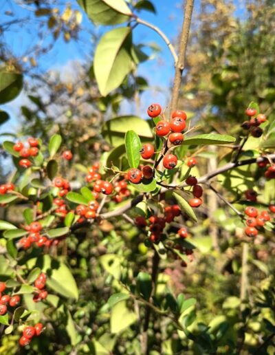 CRATEGUS – PYRACANTHA COCCINE ARBUSTO DE HOJA PERENNE, IDEAL PARA CERCOS VERDES, MUY DECORATIVO POR SU VERDE BRILLANTE, FLORES BLANCAS AL FINAL DE PRIMAVERA O A PRINCIPIOS DEL VERANO Y SUS FRUTOS ROJOS-ANARANJADOS QUE APARECEN EN OTOÑO, PUEDE LLEGAR A MEDIR 5 METROS. SU NECESIDAD DE AGUA ES POCA, RESISTE HELADAS FUERTES, LE GUSTA EL SOL Y TAMBIÉN SEMISOMBRA.