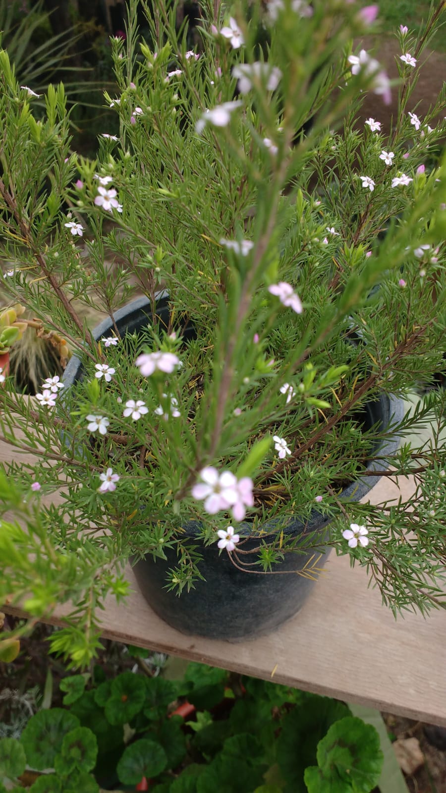 ARBUSTO PERENNE IDEAL PARA COMBINAR EN MACIZOS, JARDINERAS Y MACETEROS. SUS HOJAS SON PEQUEÑAS, Y SUS FLORES TAMBIÉN DE COLOR ROSADAS O BLANCAS, FRAGANTES, QUE FLORECEN PRIMAVERA Y VERANO. SU EXPOSICIÓN ES A PLENO SOL O SEMISOMBRA, PREFIERE SUELOS BIEN DRENADOS Y ARENOSOS. REQUIERE RIEGO REGULAR, PERMITIR QUE EL SUELO SE SEQUE LIGERAMENTE ENTRE RIEGOS.