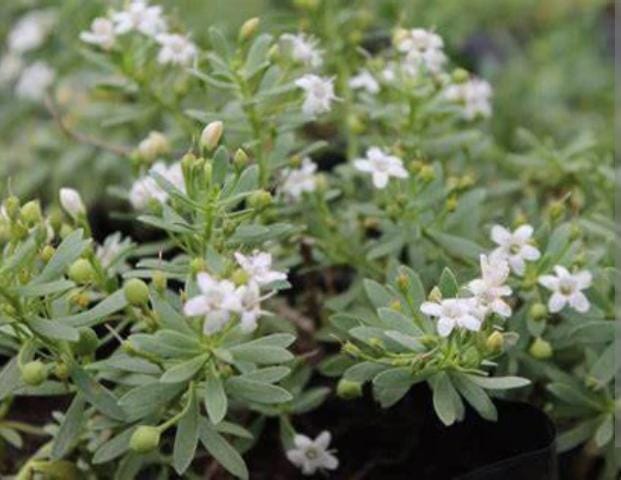 MIOPORO RASTRERO – MYOPORUM PARVIFOLIUM ES UNA PLANTA PERENNE, RASTRERA, ORIGINARIA DE AUSTRALIA, IDEAL PARA CUBRIR EL SUELO. SE CARACTERIZA POR SU RÁPIDO CRECIMIENTO, FOLLAJE DENSO Y RESISTENCIA A LA SEQUÍA. SUS HOJAS SON PEQUEÑAS, LANCEOLADAS Y DE COLOR VERDE BRILLANTE O VERDE GRISÁCEO. EN PRIMAVERA Y VERANO, PRODUCE FLORES BLANCAS O LIGERAMENTE ROSADAS, QUE LUEGO DAN LUGAR A FRUTOS PEQUEÑOS, BAYAS REDONDEADAS DE COLOR PÚRPURA OSCURO A NEGRO. ES DE PLENO SOL, TOLERA HELADAS SUAVES Y SEQUÍA. SE USAN COMO CUBRESUELO, IDEAL PARA TALUDES, PENDIENTES Y ESPACIOS CON IMPERFECCIONES.