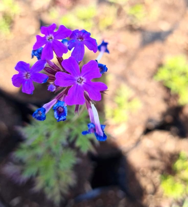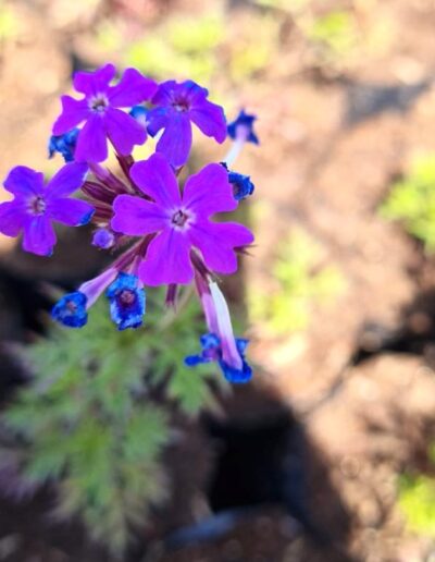 VERBENAS – VERBENA TENELLA HERBÁCEA RASTRERA PERENNE, ORIGINARIA DE ARGENTINA Y BRASIL, ES MUY APRECIADA POR SUS FLORES ABUNDANTES DE COLOR MORADO QUE APARECEN EN PRIMAVERA – VERANO. SU ALTURA FINAL ES 0.15M, ES DE CRECIMIENTO RÁPIDO, SU EXPOSICIÓN ES DE SOL, SU NECESIDAD HÍDRICA ES MEDIA. RESISTENTE A LA SEQUÍA Y NECESITA UN SUELO BIEN DRENADO, NO TOLERA HELADAS.