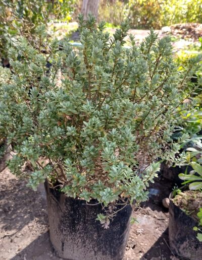 VERÓNICA GEMEND – HEBE GEMEND ARBUSTO MUY PEQUEÑO DE FOLLAJE PERENNE REDONDO, COMPACTO Y SUS HOJAS DE COLOR VERDE GRISÁCEO MUY PEQUEÑAS, ES DE CRECIMIENTO RÁPIDO, SU EXPOSICIÓN ES SOL Y SEMISOMBRA. NECESITA POCO RIEGO, SUELOS BIEN DRENADOS Y RESISTE FRÍOS INTENSOS, SU ALTURA FINAL PUEDE LLEGAR 0.70 M. ES IDEAL PARA CULTIVAR EN JARDINES , MACIZOS, ROCALLAS, ETC.
