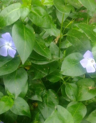 VINCAS MAJOR LA VINCA MAJOR, TAMBIÉN CONOCIDA COMO HIERBA DONCELLA MAYOR, ES UNA PLANTA HERBÁCEA PERENNE, SIEMPRE VERDE, CON TALLOS RASTREROS Y RIZOMAS. FLORECE EN PRIMAVERA CON FLORES SOLITARIAS DE COLOR AZUL VIOLETA PÁLIDO, Y SUS HOJAS SON DE COLOR VERDE OSCURO, OVALADO O LANCEOLADO. LA PUEDES CULTIVAR COMO CUBRESUELO, PLANTA DE MACETA, IDEAL PARA ZONAS SOMBREADAS O DE SEMISOMBRA. RESISTENTE A LA SEQUÍA UNA VEZ ESTABLECIDA, TOLERANTE AL FRÍO Y A LAS HELADAS. LA VINCA MAJOR SE UTILIZA COMÚNMENTE COMO CUBRESUELO POR SU FÁCIL PROPAGACIÓN Y SU CAPACIDAD PARA CUBRIR RÁPIDAMENTE GRANDES ÁREAS.