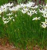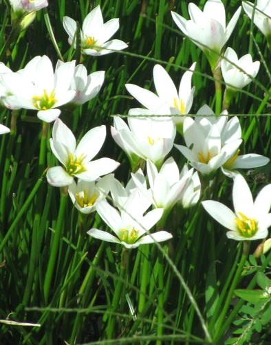 ZEPHYRANTHES – ZEPHYRANTHES CANDIDA PLANTA BULBOSA PERENNE, ORIGINARIA DE MÉXICO. ES CONOCIDA POR SUS FLORES BLANCAS EN FORMA DE ESTRELLA QUE FLORECEN DESPUÉS DE LLUVIAS, SUS HOJAS LINEALES Y VERDE BRILLANTE. SU FLORACIÓN ES EN VERANO Y OTOÑO, ES DE CRECIMIENTO RÁPIDO, TIENE ALTA TOLERANCIA A LA SEQUÍA Y POCA TOLERANCIA A LA SALINIDAD. ES POPULAR COMO PLANTA ORNAMENTAL EN JARDINES, BORDURAS, MACETAS Y JARDINES DE ROCAS. TAMBIÉN SE UTILIZA EN MEDICINA TRADICIONAL EN ALGUNAS CULTURAS.